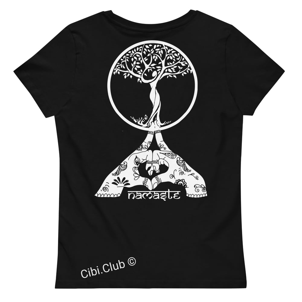 Tee-shirt coton bio F. près du corps "Namasté" Noir, imprimé blanc